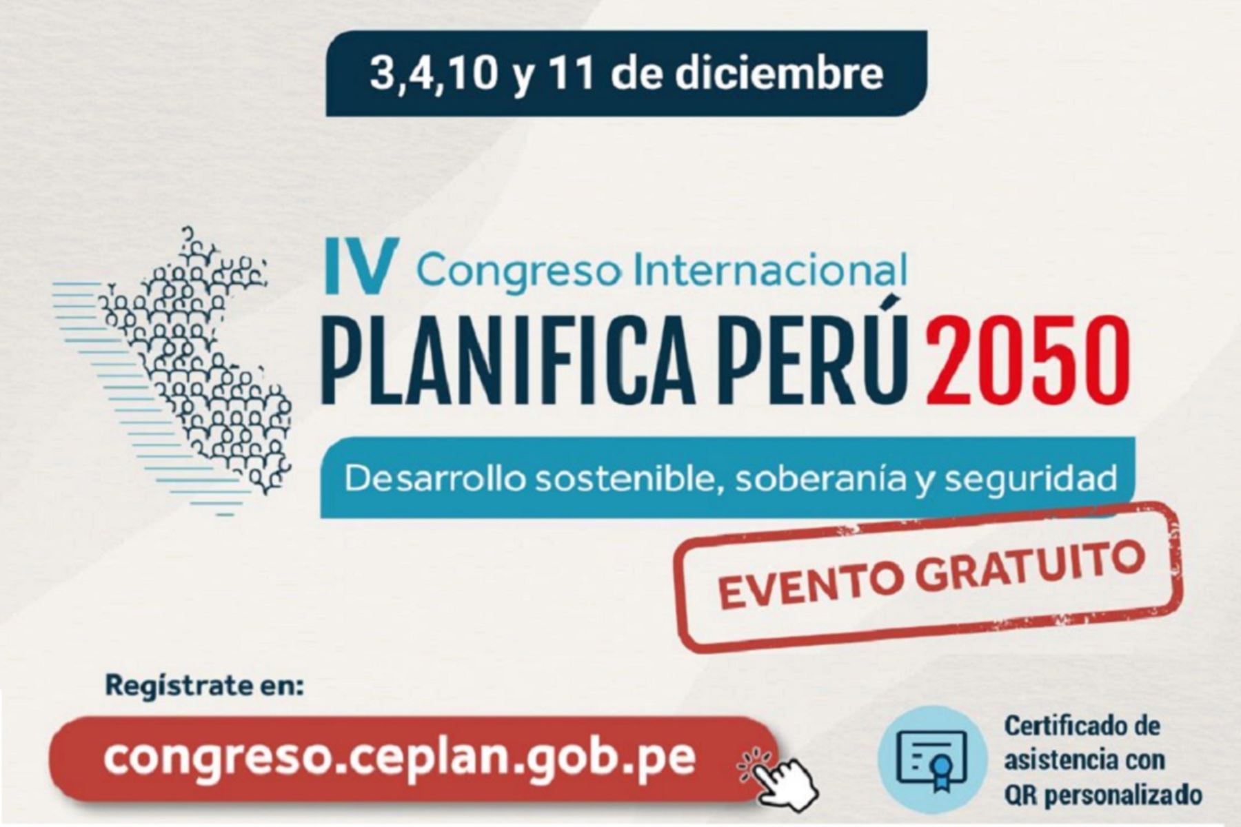 Esta actividad se realizará durante el IV Congreso Internacional Planifica Perú 2050 “Desarrollo Sostenible, Soberanía y Seguridad”, que se realizará los días 3, 4, 10 y 11 de diciembre con participación gratuita para la ciudadanía.