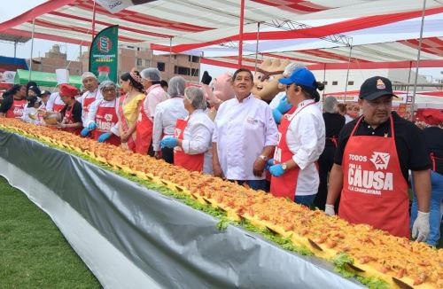 Un ambiente festivo se vivió esta mañana en el estadio Rómulo Shwa Cisneros de la ciudad de Chancay, ubicada en la provincia limeña de Huaral. Cientos de pobladores se congregaron para presenciar y participar de la elaboración de su plato emblema: la causa chancayana gigante que se realizó por el 463.° aniversario de fundación española de Chancay.