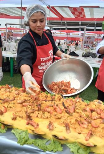 El escenario para tan simbólica elaboración fue el estadio Rómulo Shaw Cisneros que reunió a más de 50 maestros cocineros para la