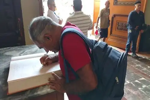 Desde septiembre de 2025, decenas de ciudadanos acuden al templo chiclayano, ubicado en pleno centro de la ciudad, para firmar este segundo libro, encuadernado y empastado en color ocre, que lleva grabado el nombre de León XIV junto al escudo papal.