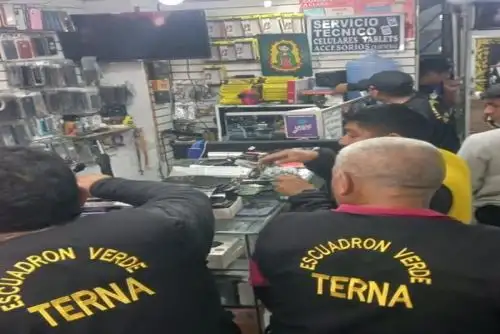 También se incautó material de cómputo que serviría para la ilícita liberación de IMEI (identificador único de cada teléfono móvil), de equipos telefónicos robados a ciudadanos, dado que el local también funciona como taller de reparación de dichos aparatos.