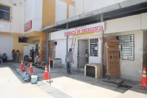 Las labores no se limitan al exterior, ya que también contemplan áreas internas de la emergencia, incluyendo paredes, pisos y techos, hasta los pabellones de hospitalización de hombres y mujeres.