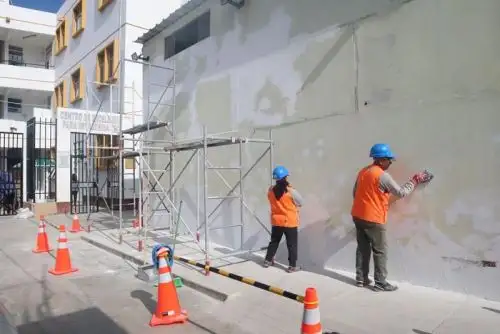 Entre las principales intervenciones se encuentra el pintado total de la infraestructura externa del nosocomio, abarcando aproximadamente 1,600 metros cuadrados, incluyendo el frontis de emergencia hasta el segundo piso. Para ello, se siguió un proceso técnico que incluyó raspado, sellado, aplicación de aditivos y acabado final, garantizando durabilidad y buena presentación.
