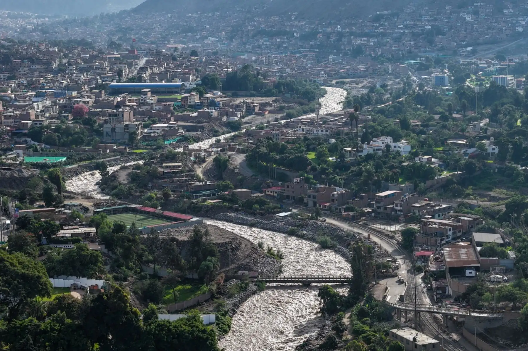 La municipalidad de Lurigancho-Chosica dispuso el cierre temporal del puente Caracol, ubicado cerca de la universidad La Cantuta, ante la crecida del cauce del río Rímac debido a las lluvias; sin embargo, pese a la medida, algunos transeúntes infringieron la disposición municipal y se arriesgaron a cruzar la estructura.