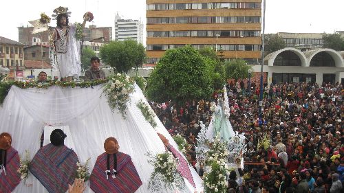 Cientos de fieles acompañaron hoy, Domingo de Resurrección, la procesión de Pascualito Huanca, que puso fin a las actividades programadas por Semana Santa en la ciudad de Huancayo, en el departamento de Junín.