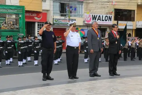 Luego, se realizó la tradicional ceremonia de izamiento del Pabellón Nacional y un desfile cívico, donde lo más destacado fue la participación de los miembros de la Policía Nacional del Perú.