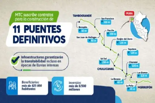Puentes beneficiarán a más de 825 000 habitantes de comunidades como Chulucanas, Sol Sol, Malingas, Yapatera, Tambogrande, Paccha y Morropón.