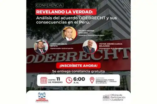 La Primera Vicepresidencia del Congreso de la República y la Oficina de Participación Ciudadana realizarán la conferencia “Revelando la Verdad”: Análisis del Acuerdo Odebrecht y sus Consecuencias en el Perú”.