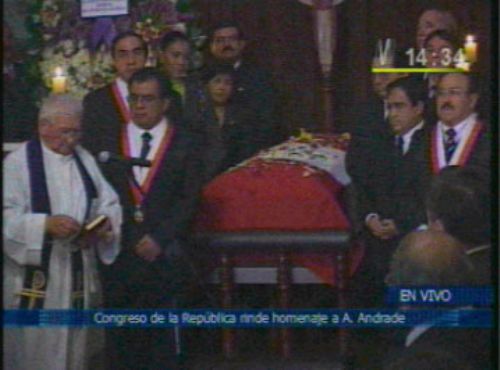 El Congreso de la República rinde un póstumo homenaje al parlamentario y ex alcalde de Lima Alberto Andrade Carmona, en una capilla ardiente ubicada en el Hall de los Pasos Perdidos de la sede legislativa.