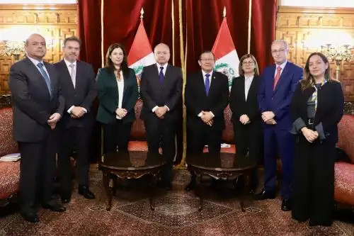 La comitiva empresarial encabezada por el presidente del directorio de la SNMPE, Víctor Gobitz, fue recibida en el Palacio Legislativo por el titular del Parlamento.