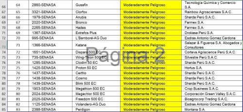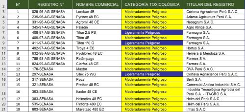 83 plaguicidas que se comercializan en el Perú ya no debe estar en el territorio peruano en ningún forma. Aquí le presentamos la relación de plaguicidas que contienen ese peligroso componente.