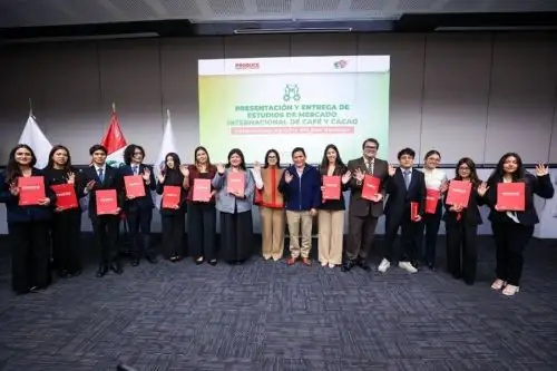 Gracias a la articulación interinstitucional público-privada promovida por el Ministerio de la Producción (Produce), representantes de las cooperativas agrarias del Consorcio Alto Huallaga recibieron los resultados de los Estudios de Mercado Internacional desarrollados por estudiantes de la Universidad de Lima, instrumento que les brindará la oportunidad de conectarse directamente al mercado internacional del cacao.