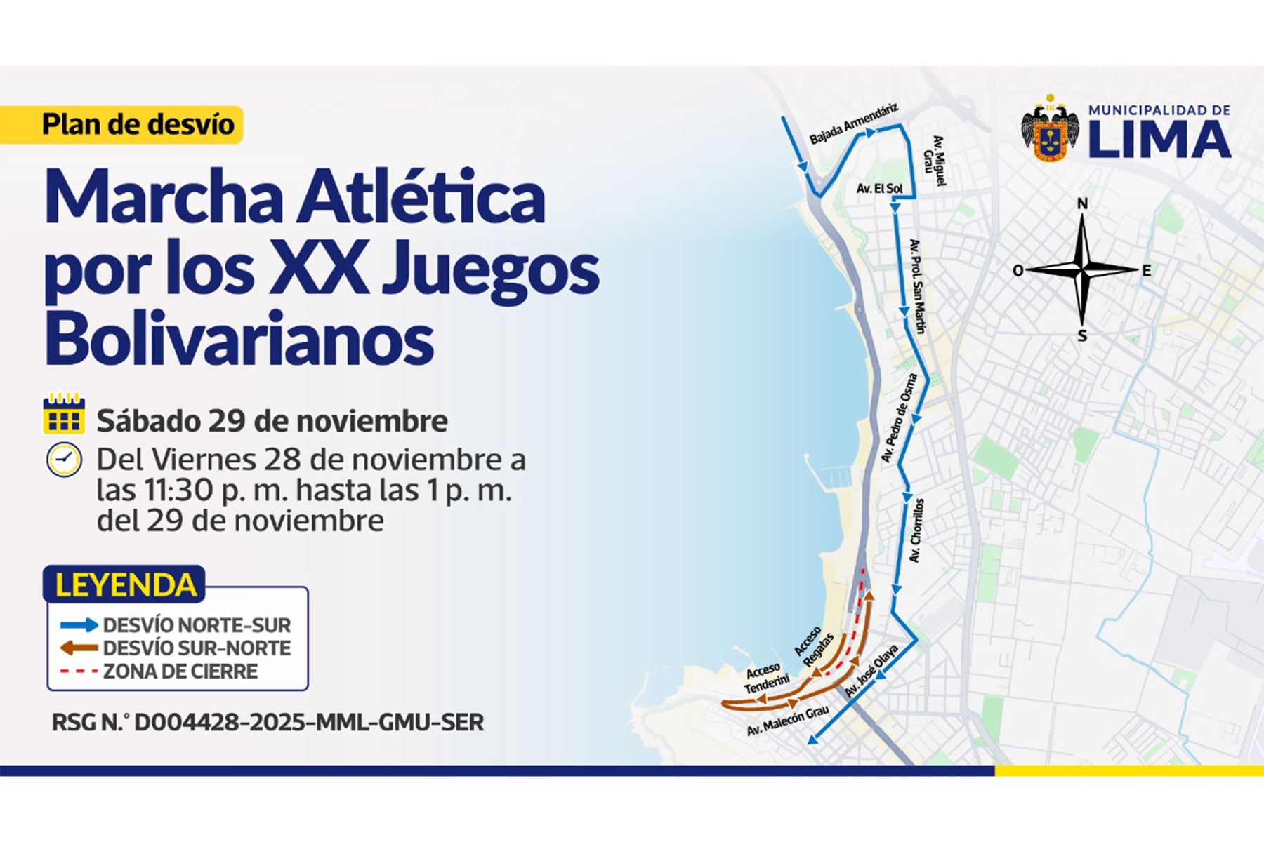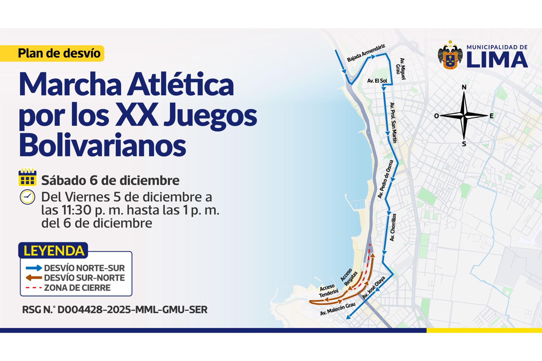 La Municipalidad de Lima anunció nuevos cierres en la Costa Verde, en diferentes fechas y horarios, debido a la realización de diversas competencias como parte de los XX Juegos Bolivarianos Ayacucho - Lima 2025.