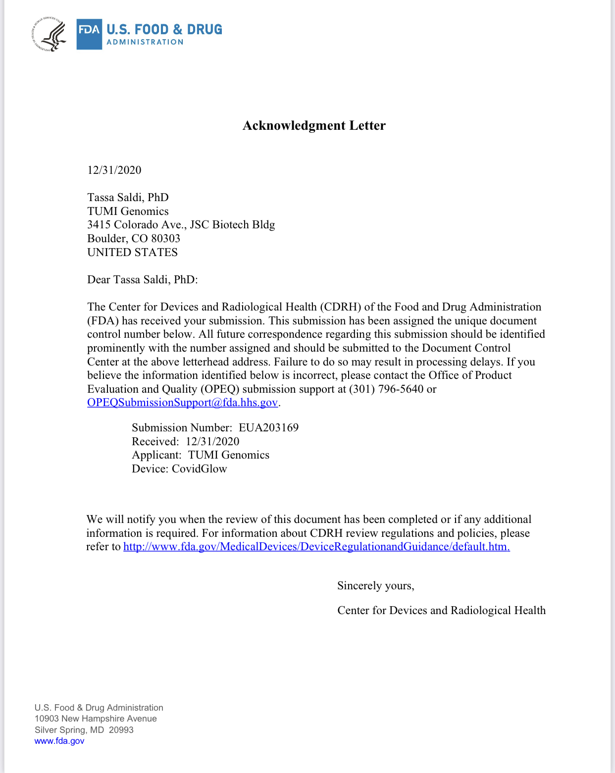 A fines del 2020 se comenzó el proceso de autorización de la FDA (Administración de Medicamentos y Alimentos) de los Estados Unidos.