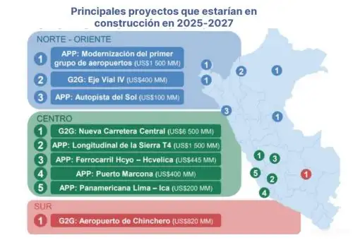 En este caso mencionó al aeropuerto de Chincheros, el Eje Vial N°4, la nueva carretera central, mejoras en la Panamericana, el Anillo Vial, entre otros.