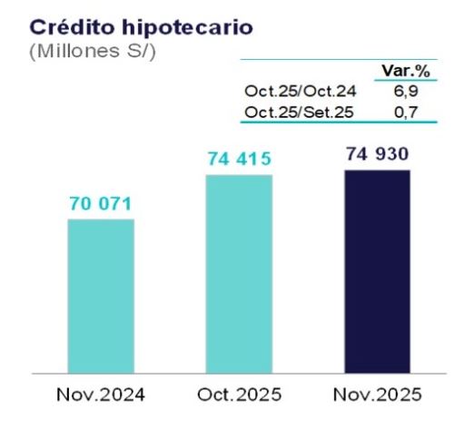 El saldo de créditos otorgados para la compra de viviendas registró una tasa de crecimiento de 6.9% interanual en noviembre del 2025, superior al 6.7% de octubre, siendo el más alto desde febrero del 2023 (7.4%), reportó el Banco Central de Reserva (BCR).