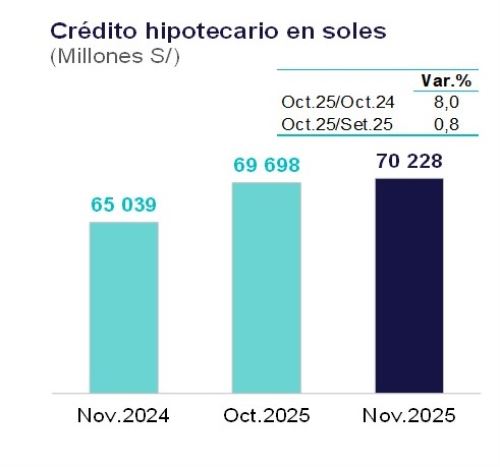 Este incremento fue principalmente favorecido por el aumento interanual de los préstamos hipotecarios concedidos en moneda nacional, que se expandieron un 8% interanual en noviembre versus el 7.8% del mes anterior.