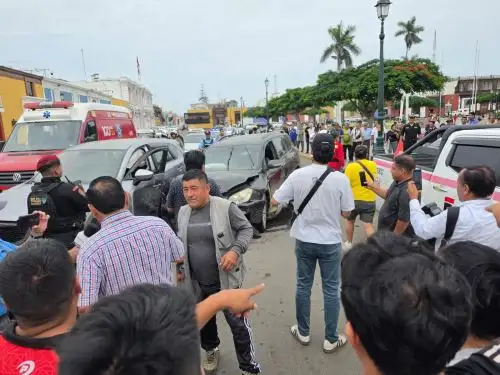 El conductor de una camioneta presuntamente provocó un cuádruple accidente esta mañana en la cuadra cuatro del jirón Pizarro, en plena plaza de Armas de la ciudad de Trujillo, en la región La Libertad, se informó.
