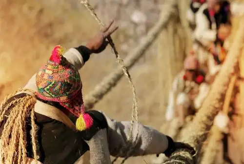 Estamos hablando de la Festividad de construcción y renovación anual del puente colgante Q’eswachaka, el último heredado de los incas y construido con fibras vegetales, que cruza el río Apurímac y que forma parte de la red de caminos inca o Qhapaq Ñan que conectó por vía terrestre a todo el imperio llamado Tahuantinsuyo.
