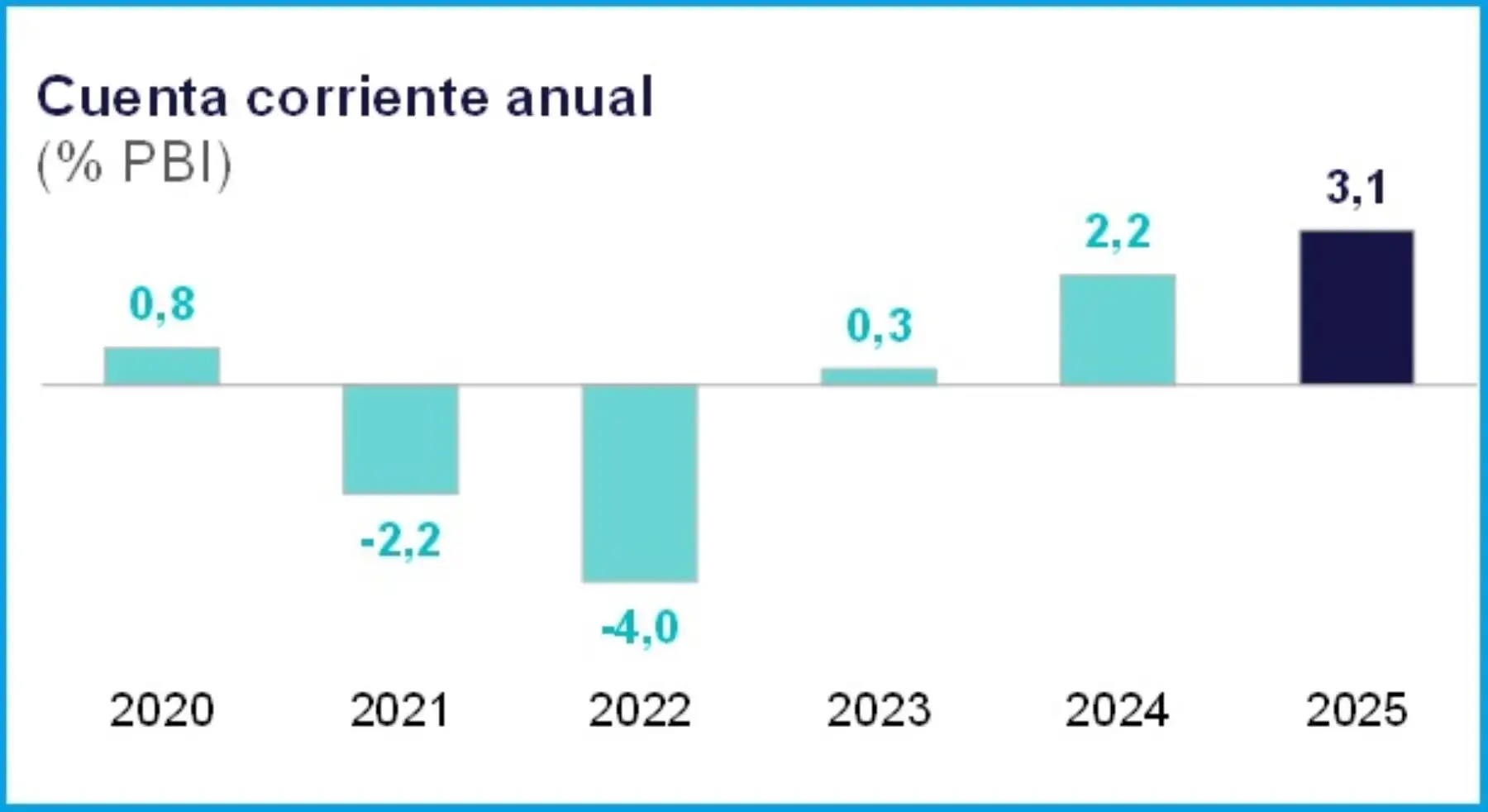 La cuenta corriente de la balanza de pagos registró un superávit de 3.1% del PBI en 2025, el nivel más alto desde 2006, sustentado principalmente en la ampliación del superávit comercial (3.2 p.p. del PBI) entre 2024 y 2025, indicó el Banco Central de Reserva del Perú.