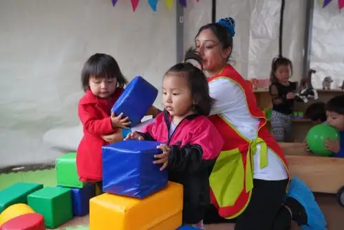 La Cuna Móvil se encuentra a cargo de las madres cuidadoras, quienes brindan una atención afectiva, promoviendo una crianza responsable y segura. En sus instalaciones, los niños continúan desarrollando su aprendizaje a través del juego, explorando mediante dinámicas grupales, y participando de actividades lúdicas y educativas. Este espacio ha sido acondicionado con mobiliario lúdico y material gráfico - plástico para dibujo y pintura; además de elementos como rompecabezas y figuras armables.