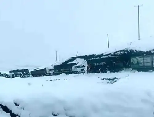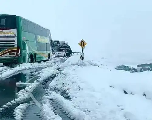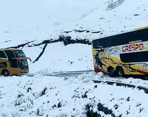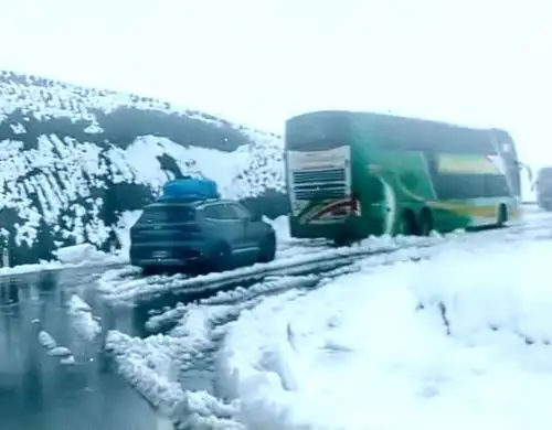 Decenas de buses de pasajeros, vehículos de carga y particulares quedaron varados y afectados por las precipitaciones sólidas.