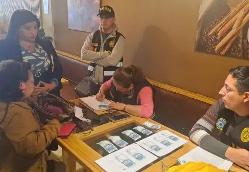La denunciante y denunciada acordaron la reunión a las 14:15 horas, ambas se encontraron en el paradero Amauta y luego se dirigieron al local antes mencionado, donde le hicieron la entrega de billetes que previamente fueron fotocopiados e impregnados con un reactivo.