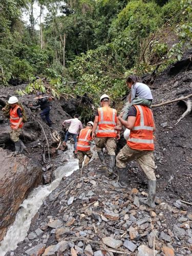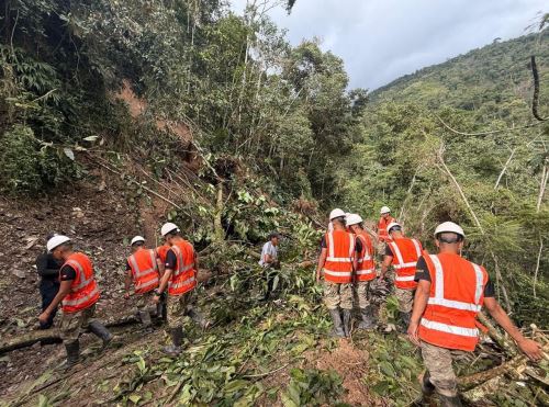 efectivos de la Segunda Brigada de Infantería y del Batallón Contraterrorista “La Oroya” N.° 34 del Ejército del Perú realizaron trabajos para despejar las vías de acceso, en coordinación con las autoridades locales.