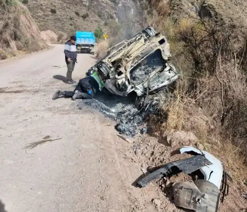 Una persona falleció y otras dos resultaron con múltiples golpes y quemaduras, tras el despiste, vuelco y posterior incendio de un auto en una carretera de la provincia cusqueña de Paruro.