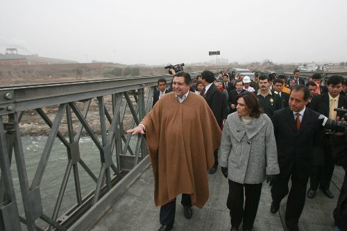 El puente fue inaugurado esta mañana por el presidente de la República, Alan García Pérez, y la titular de Transportes y Comunicaciones, Verónica Zavala.