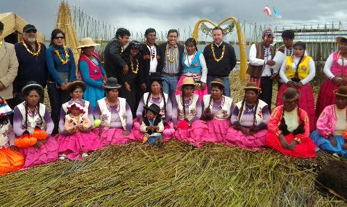 La ceremonia para hacer la entrega oficial se realizó en las islas flotantes que construyen Los Uros y estuvo encabezada por el viceministro de Interculturalidad del Ministerio de Cultura, Iván Lanegra Quispe.