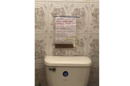 En la pancarta pegada en la pared se lee: "Contesta las llamadas, maldito Virnel Serna Guerrero, sabemos que negocias las obras del gobierno regional. Tienes que pagarnos la cuota. ¡Última advertencia!".