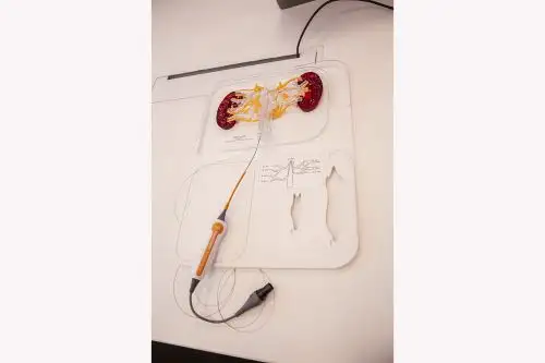 “La forma en espiral es a propósito, porque permite garantizar el contacto con las paredes del vaso para realizar la ablación de los nervios”, explicó. Además, el diseño evita que el dispositivo obstruya el flujo sanguíneo durante la intervención.