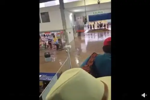 En el terminal terrestre y terrapuerto de Arequipa, las aguas pluviales ingresaron a estos locales inundando los pisos y afectando a los comerciantes, empresas de transporte y usuarios.