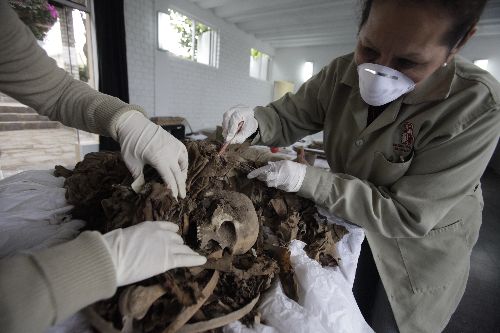 “Suponemos que los adultos son mujeres porque hay una canasta de hilos y agujas y tienen telares únicos como si fueran el ajuar de una mujer de la época” refirió. Los cráneos y objetos descubiertos han sido trasladados al laboratorio del museo. Allí, un equipo de especialistas estudia y analiza cada una de las piezas arqueológicas”, manifestó.