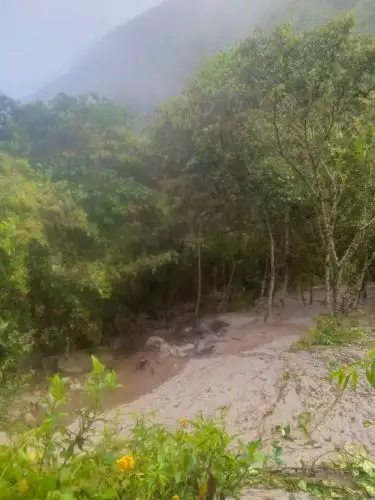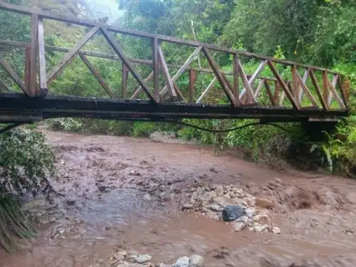 evento geológico en Chachabamba, margen izquierda del río Vilcanota, que provocó el colapso del pontón de acceso al piso de valle en el tramo Chachabamba–Choquesuysuy, afectando la infraestructura peatonal en la zona.