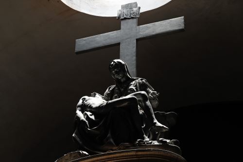 Por su parte, la réplica hecha de aluminio fue colocada en la cripta del Templo de Santiago Apóstol, en honor a Enrique Torres Belón, quien solicitó al Papa Juan XXIII el envío de una réplica de La Piedad a Lampa para fortalecer la devoción católica en la población.