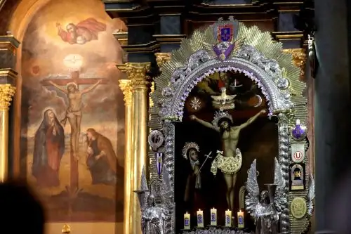 Thus, the Lord of Miracles became a motive for worship after the wall on which it was painted miraculously survived a destructive earthquake unscathed.