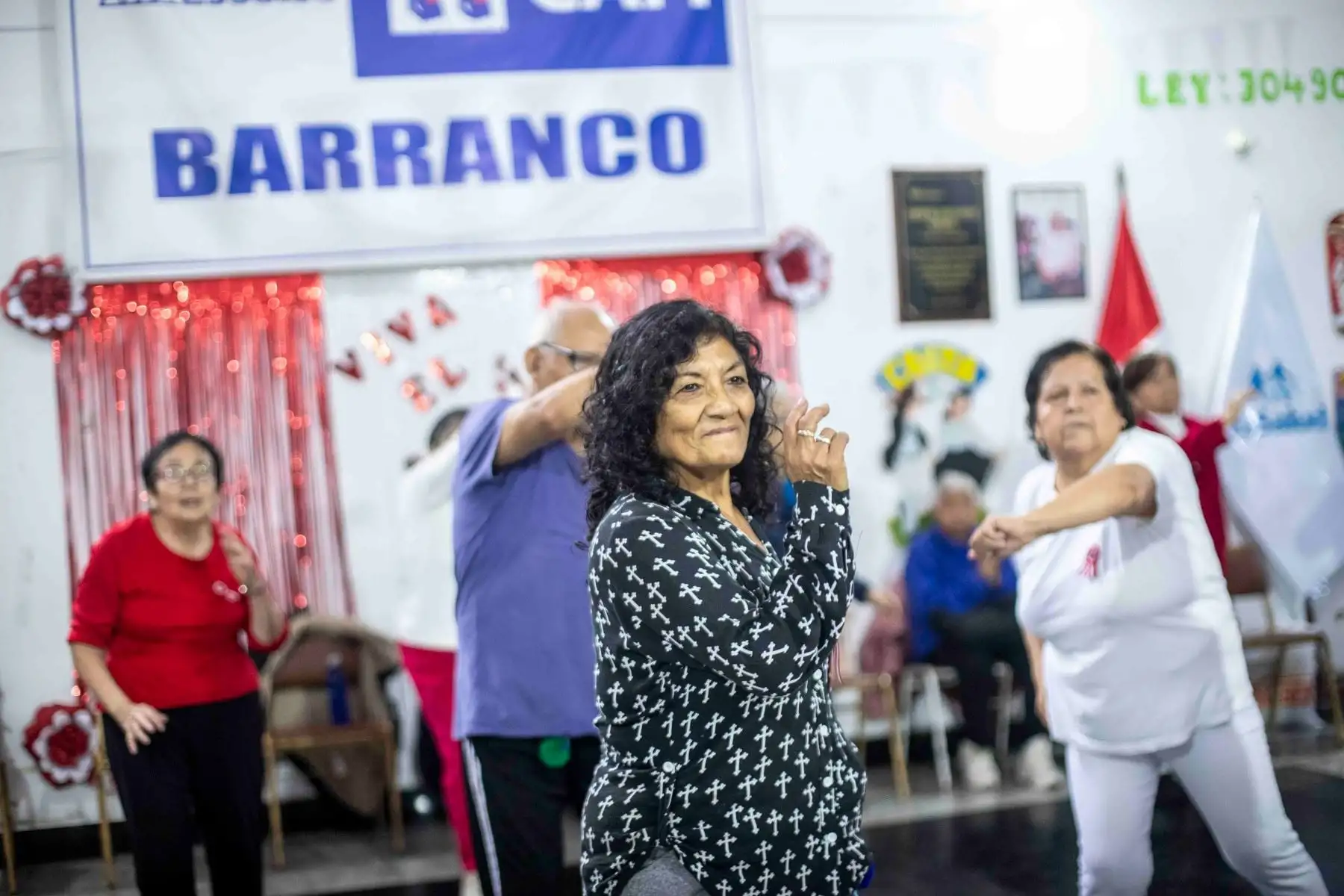 “El CAM es mi segunda casa. En los talleres de manualidades siento alegría, encuentro apoyo y fuerzas para seguir adelante”, comparte Rosa Sipión, mientras baila un vals criollo en una peña organizada por su centro.