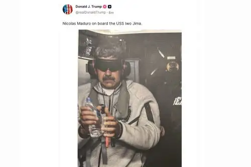La foto, colgada por Trump en su red Truth Social, está acompañada por una descripción: "Nicolás Maduro a bordo del USS Iwo Jima", en alusión al buque militar estadounidense al que fue trasladado.