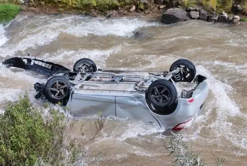 Según el parte policial, el vehículo en el que viajaban sufriera un despiste y volcadura a la altura del kilómetro 109, en el sector de Chicla-Casapalca. La unidad, un automóvil de color plata metálico con placa AAH-476, terminó cayendo a las aguas del río.