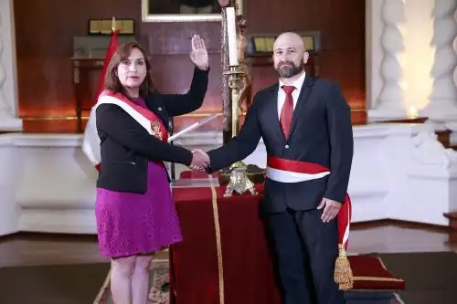 La presidenta de la República, Dina Boluarte, tomó juramento a Eduardo Alonso García Birimisa como nuevo ministro de Trabajo y Promoción del Empleo, en una ceremonia realizada esta tarde en Palacio de Gobierno.