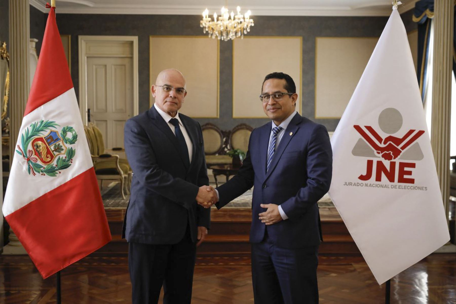 A fin de conocer los avances y los requerimientos técnicos del proceso electoral del 12 de abril de 2026, y ratificar que la realización de los comicios constituye un eje prioritario de la actual gestión gubernamental, sostuvieron una reunión de trabajo el presidente del Consejo de Ministros, Ernesto Álvarez, y el titular del Jurado Nacional de Elecciones (JNE), Roberto Burneo.