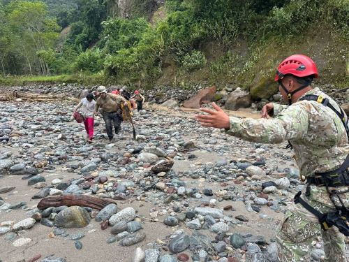 Siete integrantes de una familia fueron rescatadas con éxito en el distrito de San Ramón, provincia de Chanchamayo, región Junín, por el Ejército del Perú que movilizó un helicóptero del Comando Especial Vraem y personal de la Compañía de Intervención Rápida para Desastres del del Comando Operacional del Este (COE).