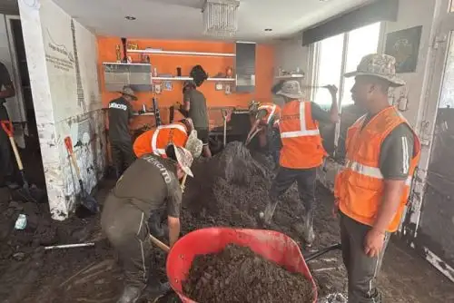 Durante varios días consecutivos, las Compañías de Intervención Rápida para Desastres del Ejército realizan trabajos de descolmatación de cauces, limpieza de vías y remoción de lodo y escombros. Asimismo, brindan apoyo directo en la limpieza de viviendas que resultaron afectadas por el ingreso de agua y material arrastrado por las precipitaciones pluviales, contribuyendo a la recuperación de los espacios habitacionales.