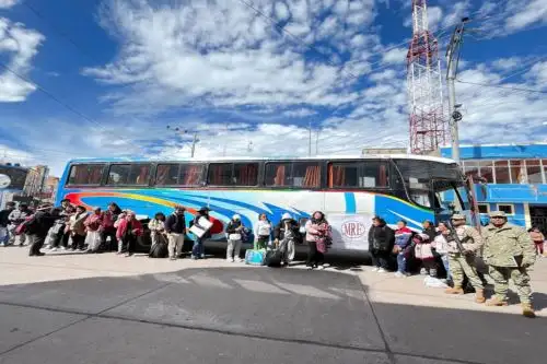 El sector Defensa, a través del Ejército del Perú, logró que 33 connacionales fueran repatriados desde el distrito fronterizo de Desaguadero hasta la ciudad de Juliaca, región Puno, tras permanecer cerca de cinco días varados en territorio boliviano como consecuencia de los bloqueos de carreteras registrados en ese país.