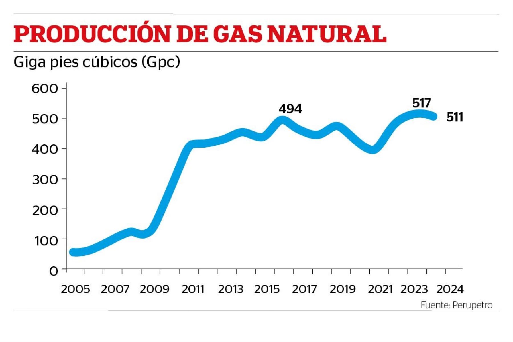 La producción de gas natural en el Perú se elevó de menos de 100 giga pies cúbicos (Gpc) en el 2006 a 510 Gpc en el 2024, ligeramente (-1%) por debajo del máximo histórico registrado en 2023 cuando llegó a los 517 Gpc, siendo los Lotes 88, 56 y 57 en Camisea, los que representan alrededor del 95% de la producción total del país, según estadísticas de Perupetro, recopiladas por Promigas.