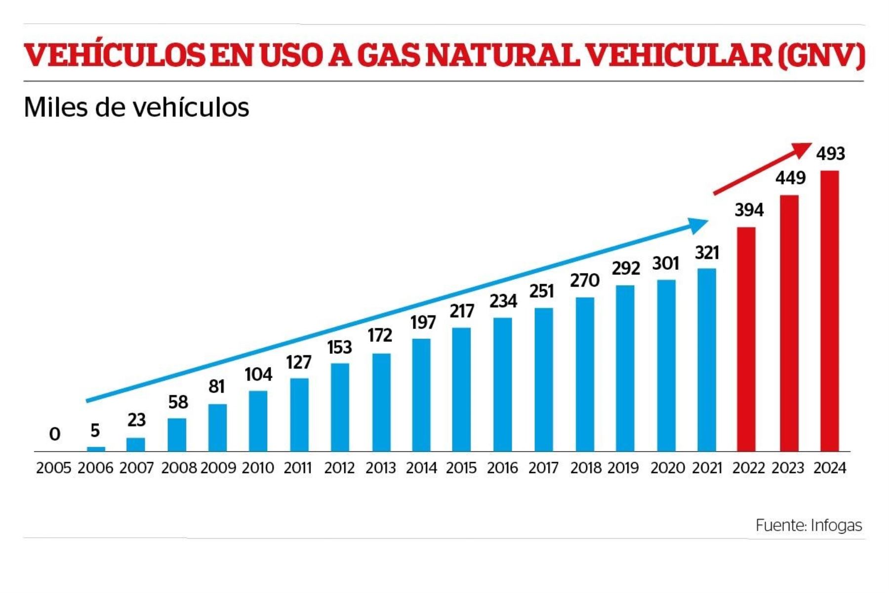 Para muestra un botón, en el 2006 apenas 5,000 vehículos ya funcionaban con gas natural, 10 años más tarde en el 2016 esta cifra se incrementó a 234,000 vehículos y en el 2024 alcanzó los 493,000 que representa el 15% del parque automotor del Perú.