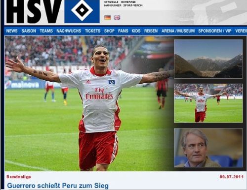 El club Hamburgo SV de Alemania expresó su alegría por el gol del delantero peruano Paolo Guerrero en la victoria 1-0 sobre México, que deja a Perú "con un pie" de conseguir la clasificación a los cuartos de final de la Copa América Argentina 2011.