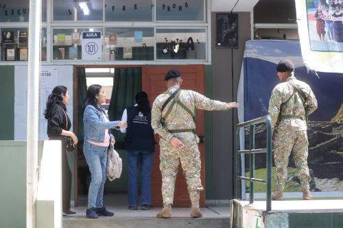 En centros de votación como la IE Virgen del Rosario de Pachacamac, los efectivos policiales y militares encargados del resguardo del local, procedieron al cierre de las puertas del ingreso a las 18:00 horas.